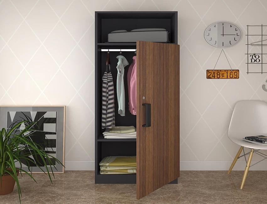 With movable shelves and hanging rods, our one-door wardrobes provide plenty of room.